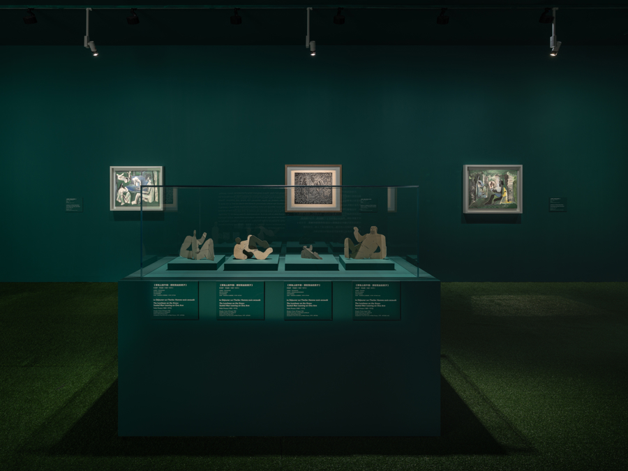 展览中诸多作品展现毕加索与艺术史的持续对话:围绕马奈《草地上的午餐》的系列再创作,彰显其以当代视角解构经典的魄力;陶瓷作品《饰有大胡子农牧神头像的长盘》(1948),则将幽默与变形智慧融入传统工艺。
